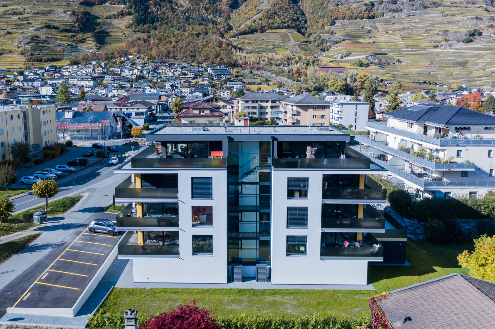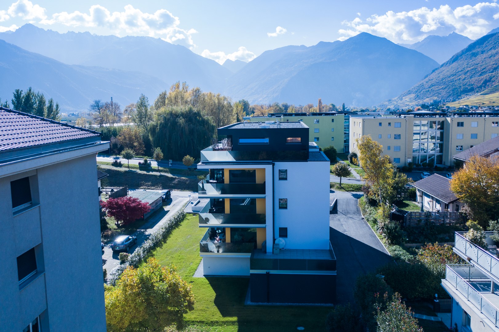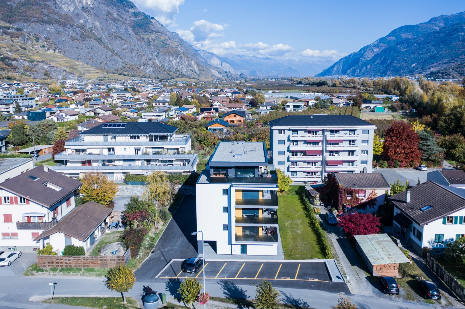 Parfaitement situés au centre de Fully, ces six spacieux appartements de 3.5 pièces sont disposés en deux appartements par étage et séparés par la cage d’escaliers permettant ainsi une grande intimité.