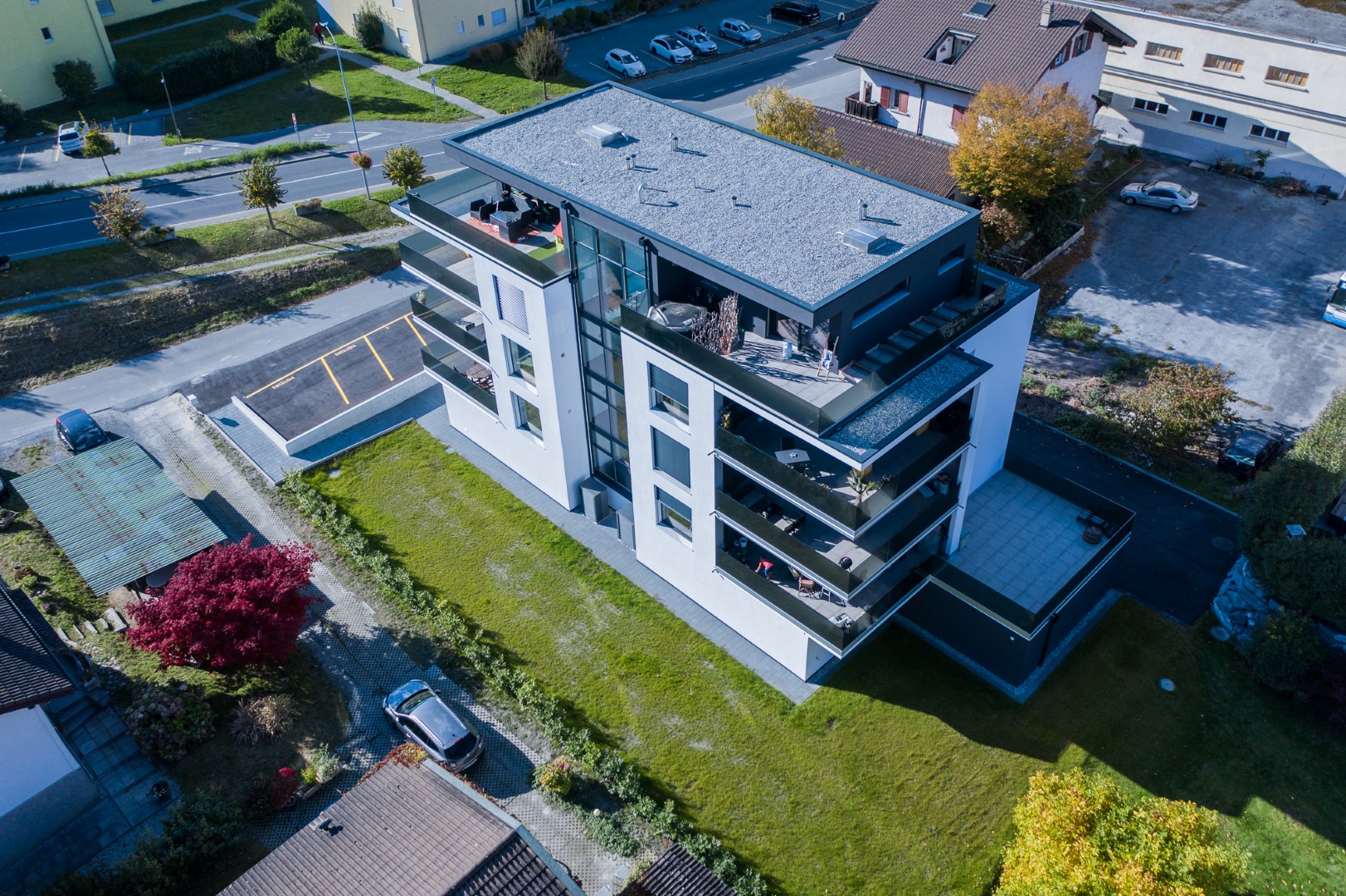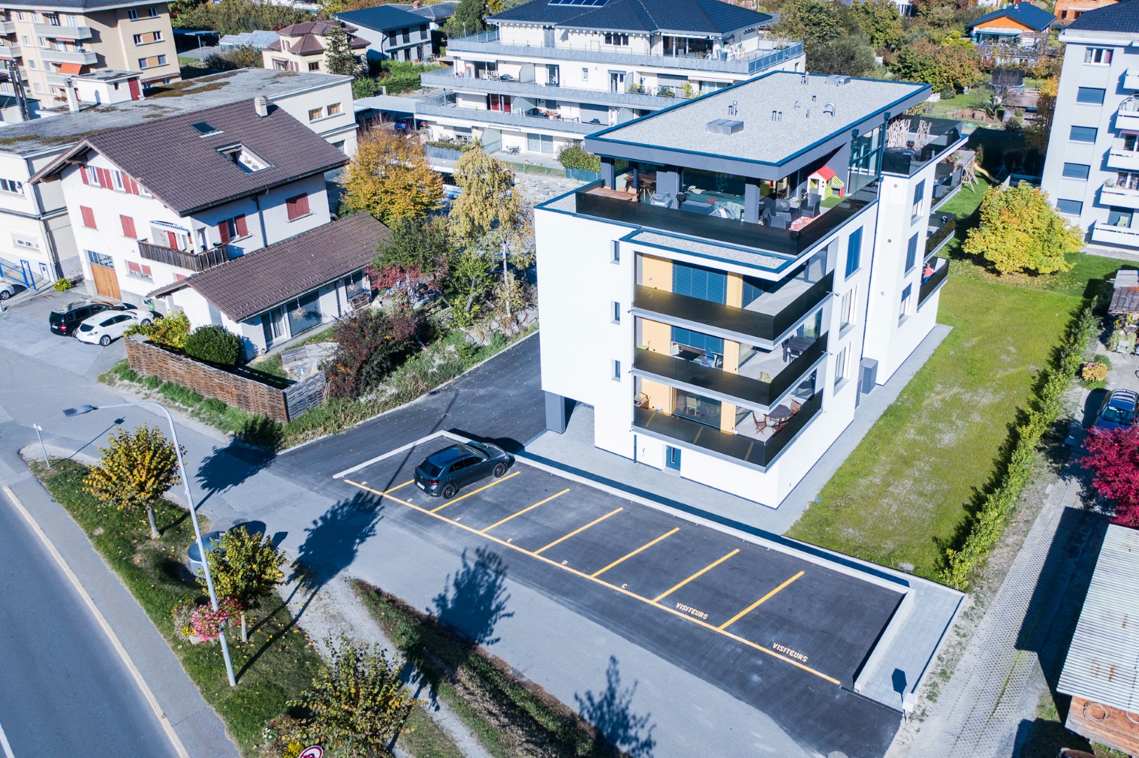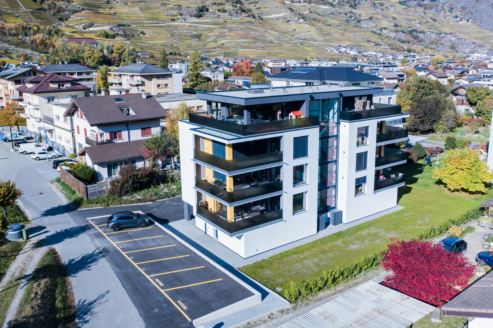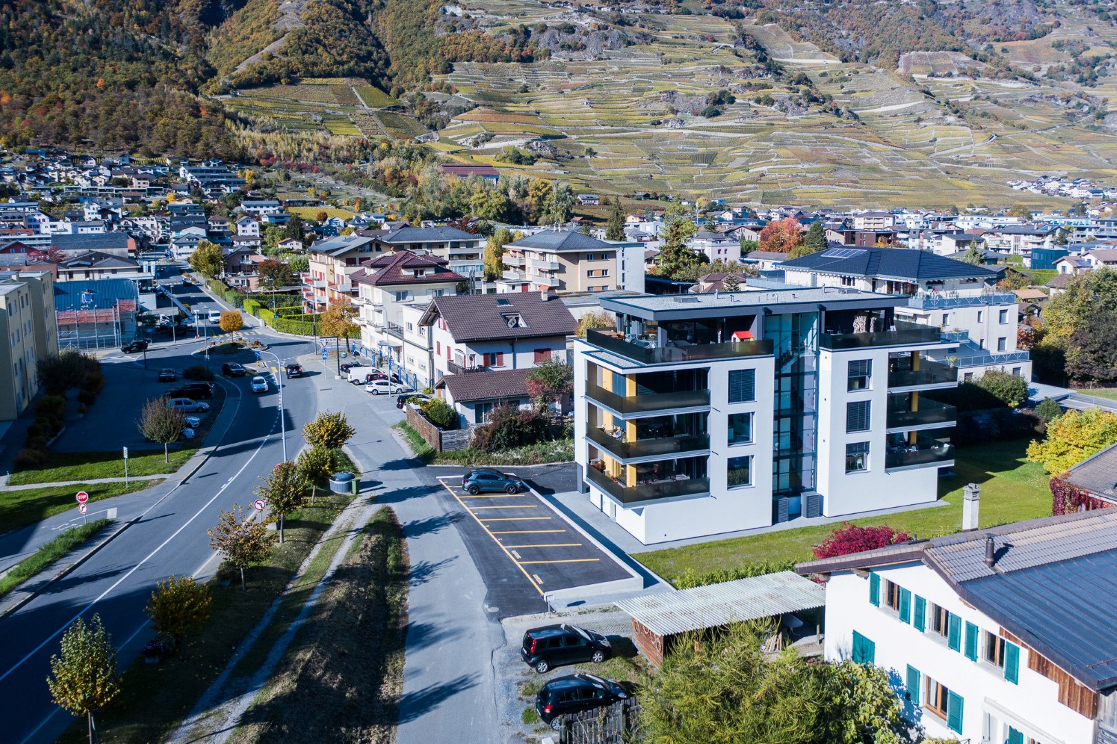 Parfaitement situés au centre de Fully, ces six spacieux appartements de 3.5 pièces sont disposés en deux appartements par étage et séparés par la cage d’escaliers permettant ainsi une grande intimité.